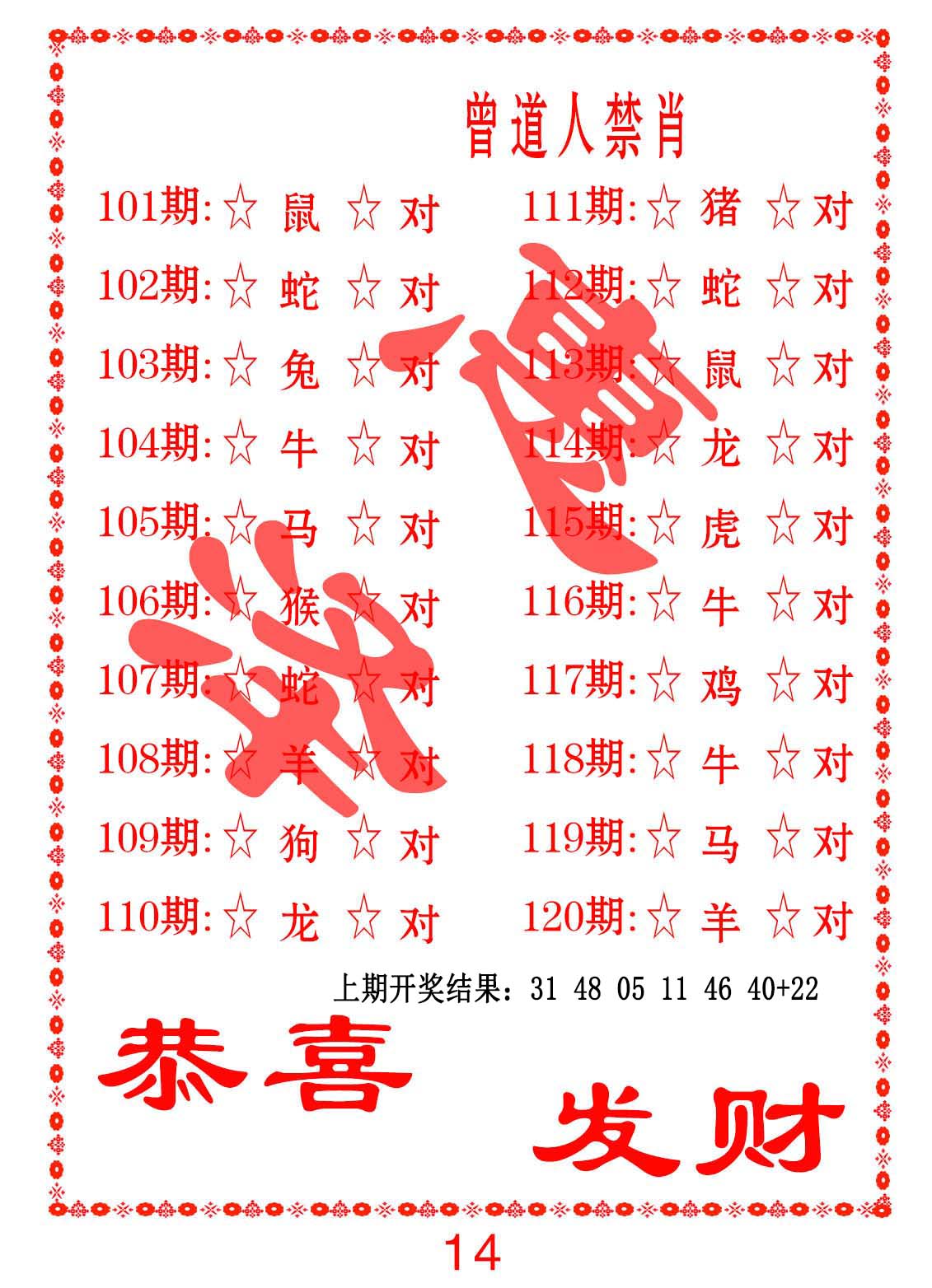 107期:热爱动物【绝杀十码】〓 高手独家发表√